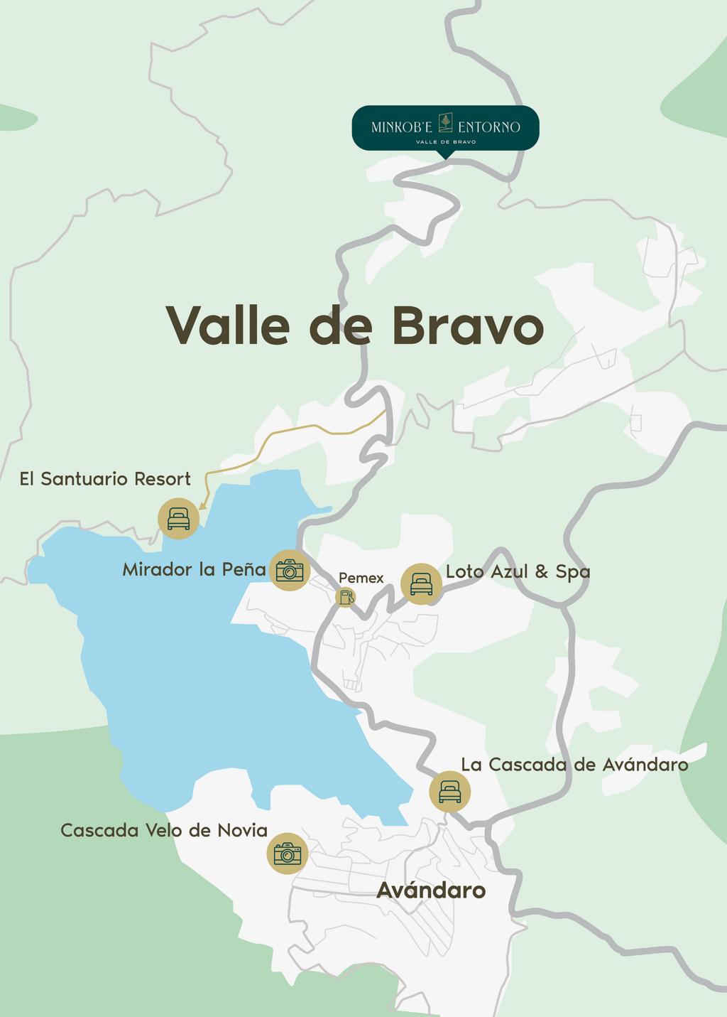 Nuestro residencial campestre ofrece la intimidad de la flora del bosque sin prescindir de las comodidades modernas. A tan solo 10 minutos del centro de Valle de Bravo, en San Gabriel lxtla, MINKOB'E es la ubicación más versátil entre los espacios introspectivos del hogar y el ambiente cultural y recreativo de la comunidad.